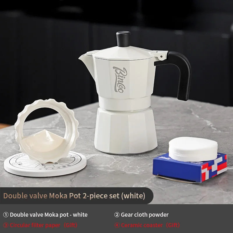 Elevate your daily coffee ritual with the Bincoo Double Valve Coffee Moka Pot, a 200ml stovetop powerhouse designed for authentic Italian espresso at home, on the go, or outdoors. Crafted for baristas and coffee lovers alike, this innovative moka pot combines classic design with modern features to deliver rich, crema-topped brews that rival professional machines—perfect for lattes, cappuccinos, mochas, or straight-up espresso shots.