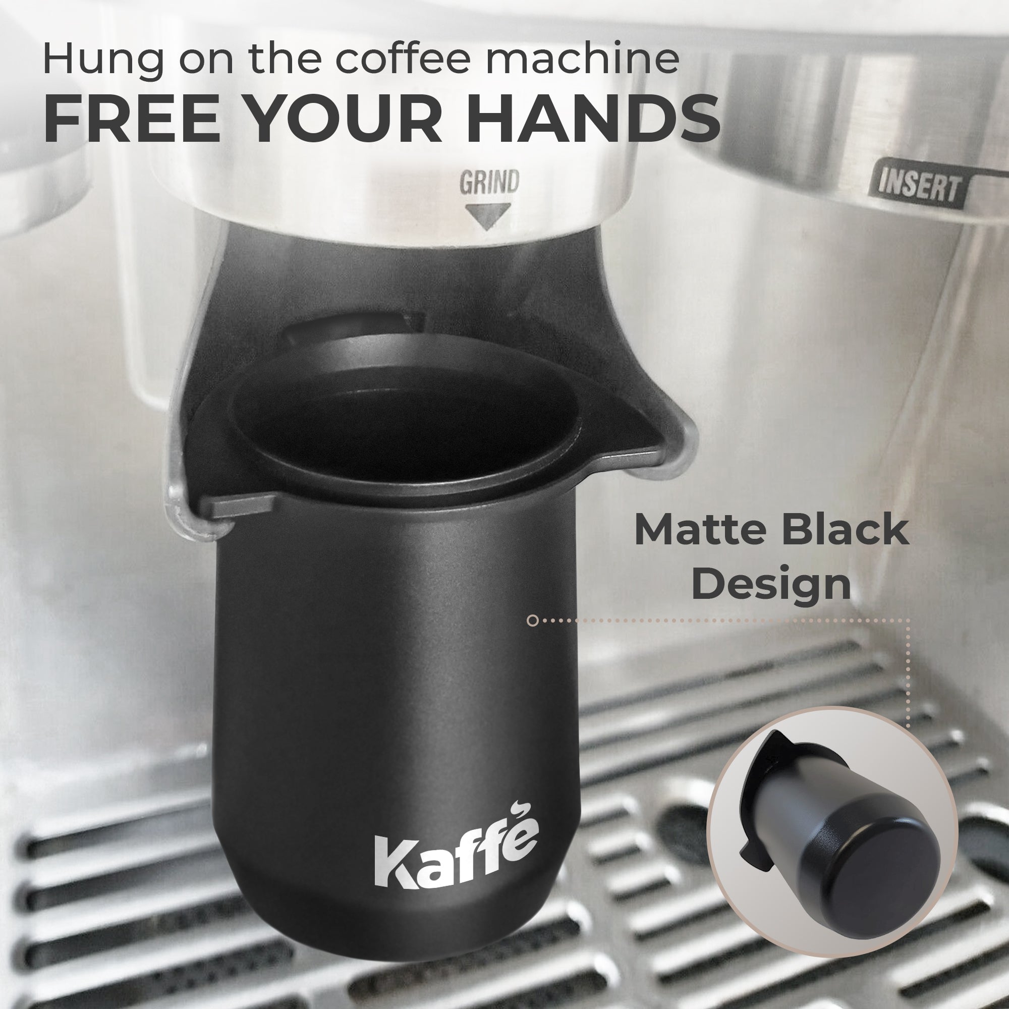 • SUPERIOR DESIGN - Kaffe's Coffee dosing cup is made of premium brushed stainless steel, sturdy enough for long-term and repeated use. Its large capacity is perfect for one or two cups of espresso grounds.