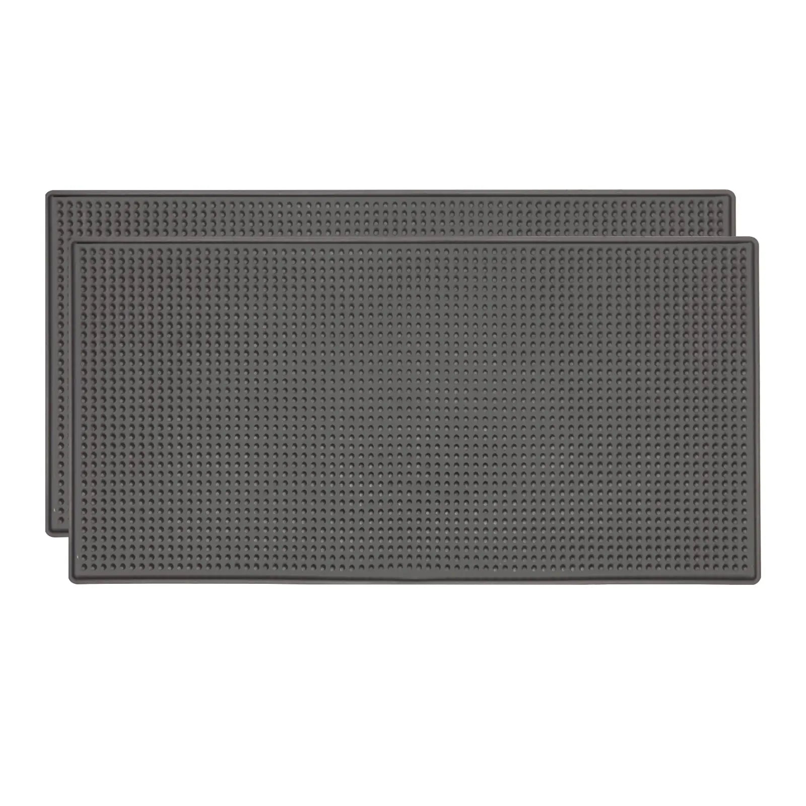 [Large Mat: Package Include 2PCS Grey Mats. Mat size is large 24inch x 12inch 0.33 inch thick. Place the mats under your coffee machine favorite kitchen dish drying rack put more pots pans plates and other utensils Durable and Non-Slip: Made from safety durable rubber material Non-Slip back surface so that lay flat and look sleek at any bar top table or kitchen counter Easy to clean and fast dry mat: These mats supplies are very easy to get clean. Rinse clean with soap and warm water easily Useful Design:This bar service mat is designed to be placed on the edge of the bar where the bartender serves drinks for the servers. It helps to prevent excess spillage and damage to glasses from the bar or from sliding off onto the floor Multifunctional Mats: It can be used in the kitchen living room bathroom office and other countertops tableware draining coffee machine mats sink mats]